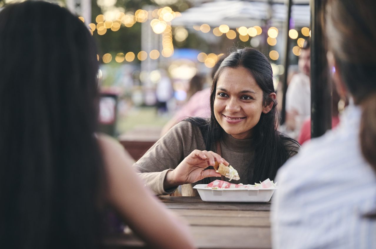 The Festival Hub offers a place to meet, gather, eat, and absorb the festival vibes.